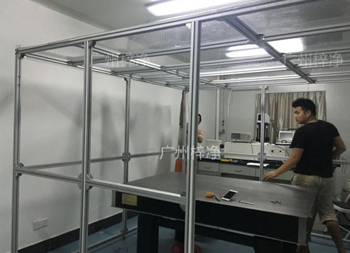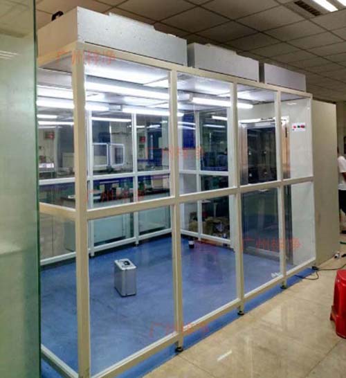 千級潔凈棚(1000級潔凈棚)采用工業(yè)鋁材(或不銹鋼方通、鐵方通噴塑)作為框架,風機濾網(wǎng)機組(FFU)送風,四周懸掛防靜電垂簾(或鋼化玻璃),其內部凈化級別可達到100級-10000級。適用于操作區(qū)內局部凈化級別要求高的區(qū)域。