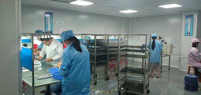 2、無塵車間潔凈室一般采用泡沫彩鋼或是巖棉板吊頂有立墻,有獨立的空調送風系統(tǒng),空氣經(jīng)過初效、中效、高效三級過濾,人員及物料配有風淋室及傳遞窗潔凈過濾。