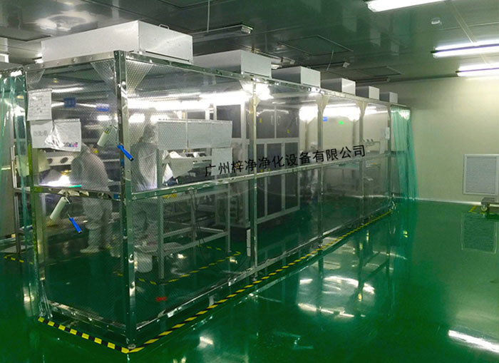 潔凈棚框架一般使用工業(yè)鋁型材,頂部可用不銹鋼鋼板、烤漆冷塑鋼板、防靜電網(wǎng)格簾及壓克力有機(jī)玻璃等材料。潔凈棚周?chē)话愣际遣捎梅漓o電網(wǎng)格簾或是有機(jī)玻璃,送風(fēng)部均采用FFU潔凈送風(fēng)單元。無(wú)塵車(chē)間一般采用泡沫彩鋼或是巖棉板吊頂有立墻,有獨(dú)立的空調(diào)送風(fēng)系統(tǒng),空氣經(jīng)過(guò)初中高效三級(jí)過(guò)濾,人員及物料配有風(fēng)淋室及傳遞窗潔凈過(guò)濾。
