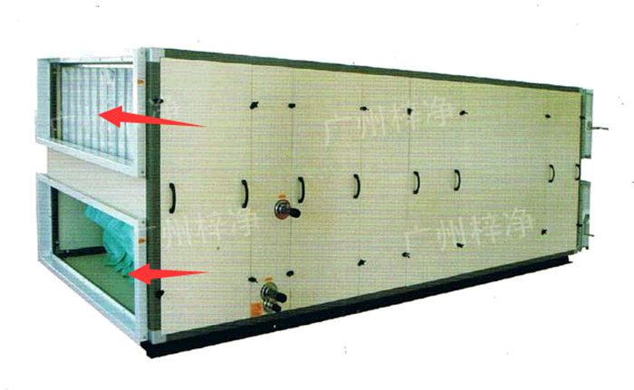 (1)水平層流式:水平式空氣自過(guò)濾器單方向吹出,由對(duì)邊墻壁的回風(fēng)系統(tǒng)回風(fēng),塵埃隨風(fēng)向排出GMP凈化車(chē)間外,一般在下流側(cè)污染較嚴(yán)重。