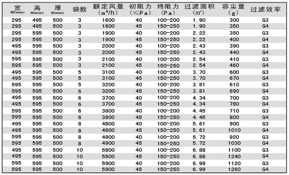 過(guò)濾效率:G1:40%@5.0μm、G2:65%@5.0μm、G3:85%@5.0μm、G4:90%@5.0μm(計(jì)重法);