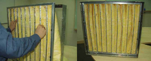 定期檢查過(guò)濾器進(jìn)風(fēng)面有無(wú)雜物堵塞情況、濾料表面有無(wú)破損;如有物品堵塞表面,則應(yīng)清除;濾料表面破損嚴(yán)重,則必須更換新的濾料或更換新的過(guò)濾器重新安裝;過(guò)濾器安裝時(shí),要保證與框體的壓邊處密封性良好,以防止風(fēng)量泄露;不可用重物去撞擊過(guò)濾器的表面,不可用力去拉過(guò)濾器的濾料表面;安裝時(shí),應(yīng)使濾袋口長(zhǎng)度方向垂直于地面,以保證送風(fēng)的過(guò)濾效果和增加使用壽命。