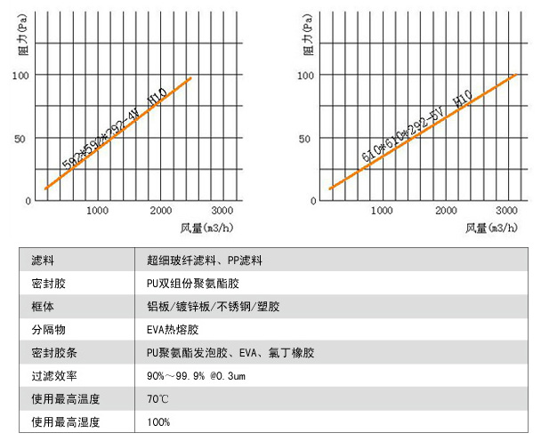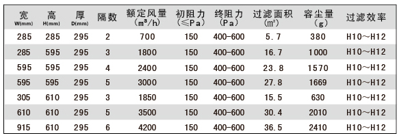 8、過濾等級:H11-13、H14、U15、U16(EN1882)。