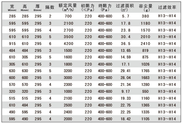 用戶選購指南-260度耐高溫高效過濾器技術(shù)參數(shù)