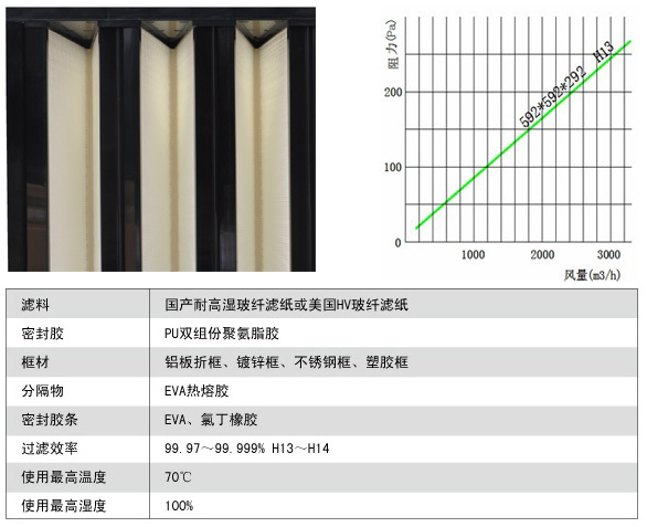 HV系列濾料是采用超細玻璃纖維制成的高密度紙,浦料褶登以盡量擴大派料的有效過濾面積,從而降低濾料的濾速,這對高效過濾器是相當(dāng)重要的.進口H&V3波纖濾料具有防水性和阻燃性可適用于1000° F(538℃)的高溫,閉孔EVA密封墊片可用干氣密性密封,防止過濾器側(cè)漏,標(biāo)準(zhǔn)為18mm寬6mm厚。也可采用硅質(zhì)密封墊片,無隔板高效可使用聚氨酸發(fā)泡整體形成,發(fā)泡機走XY軸,自動運行,密封效果相當(dāng)好。