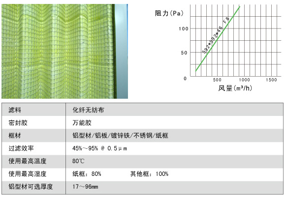 效率:大氣塵比色法平均過(guò)濾效率:45%,65%,85%,95%